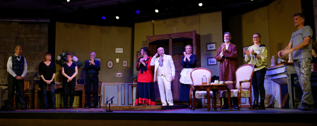Voilà notre première série de représentations 2024 terminée. Comme à l’accoutumée, ce furent de grands moments d’échange avec vous cher public ! Rires, applaudissements, c’est la récompense que vous donnez à tous les membres de notre compagnie, et on en redemande ! Merci !