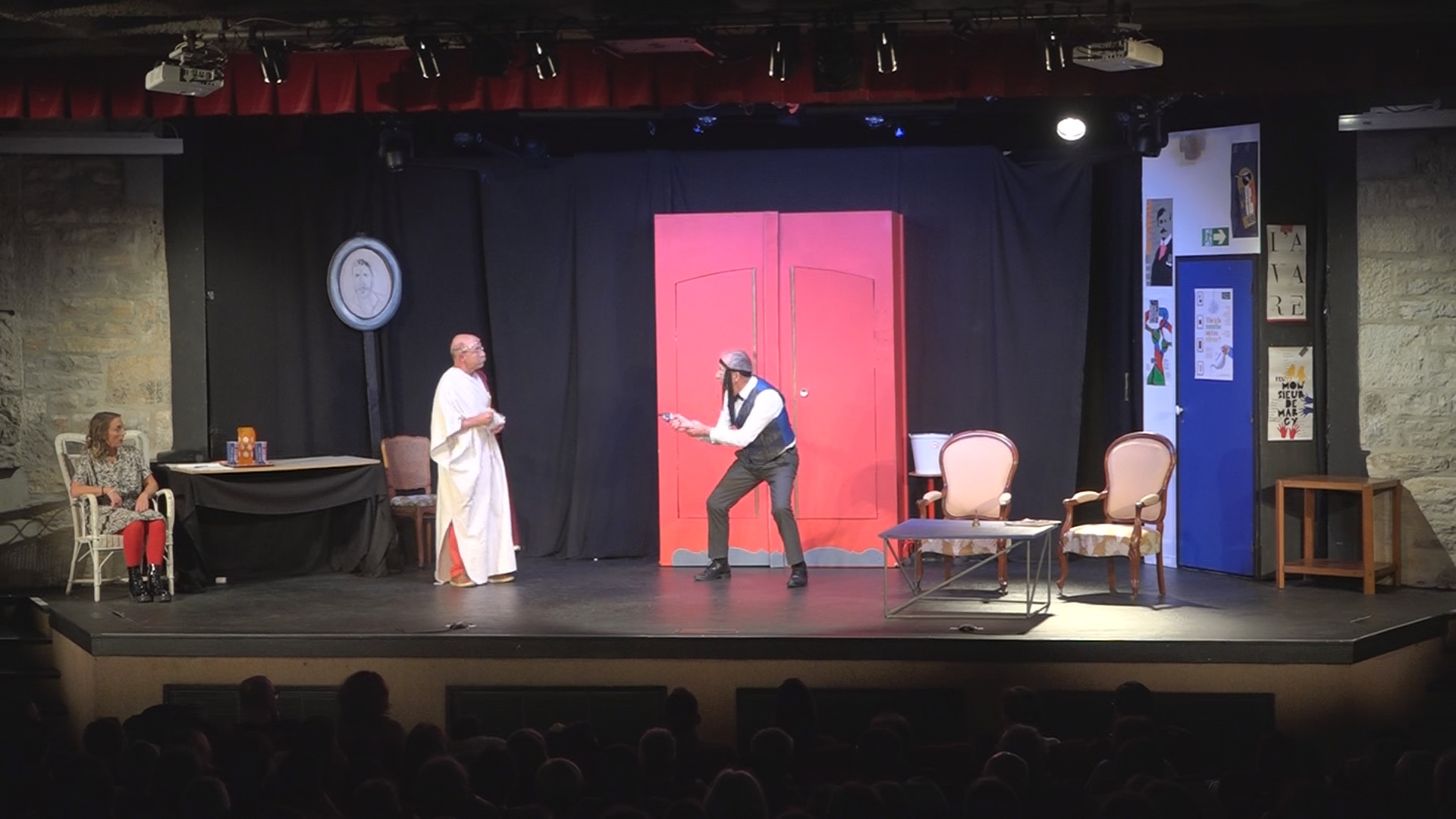 Une troupe de comédiens joue une pièce de boulevard où il est question d’un gentleman cambrioleur qui s’est introduit chez une aristocrate. Mais chut … On ne vous en dit pas plus !